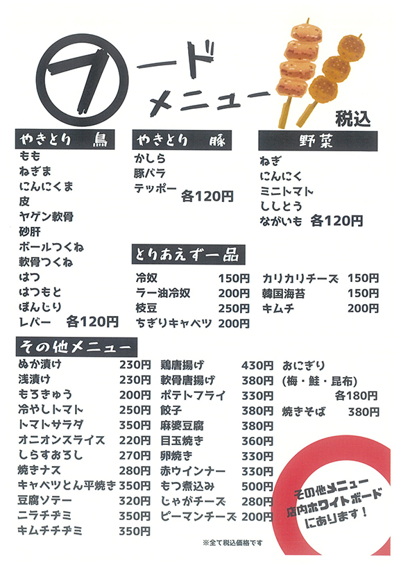 やきとり 全品120円(税込)/ 店舗・お持ち帰り